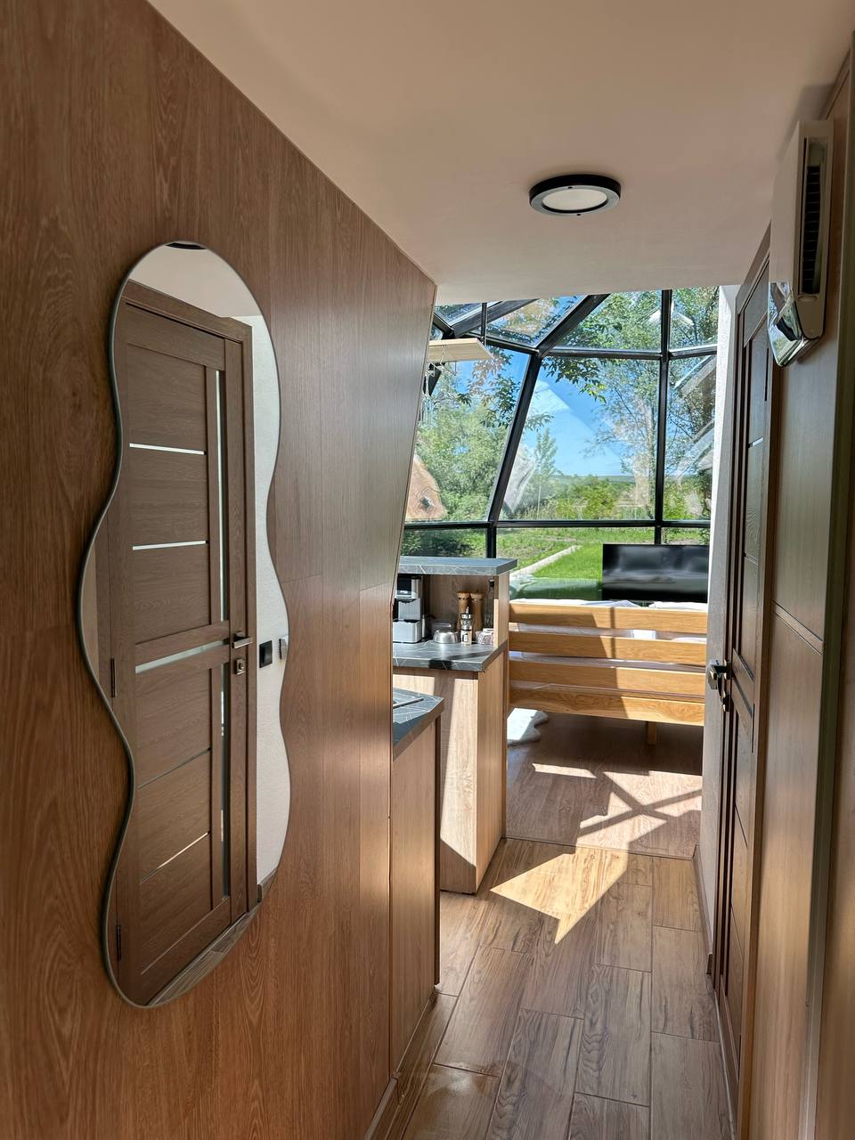 - Mirror Sauna: Saună finlandeză pe lemne, cu ferestre panoramice cu efect de oglindă.