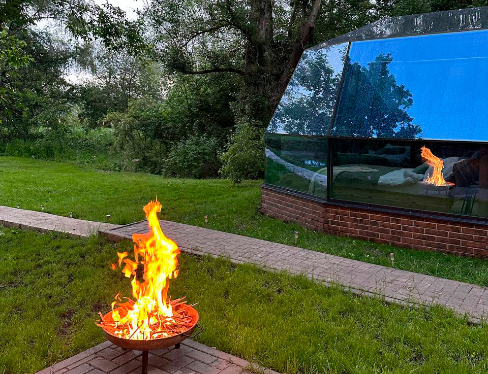 - Mirror Sauna: Saună finlandeză pe lemne, cu ferestre panoramice cu efect de oglindă.